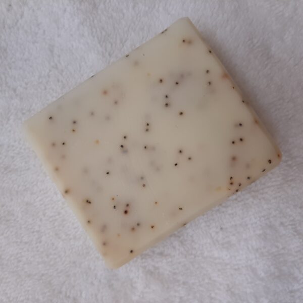 Koostis/Ingredients (INCI): Sodium Tallowate, Aqua, Citrus lemon Peel Oil, Papaver Somniferum (Poppy) Seed. Citral, Limonene.